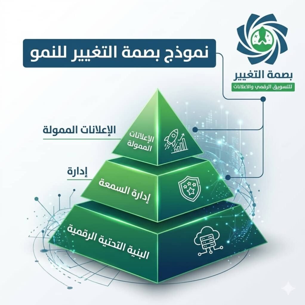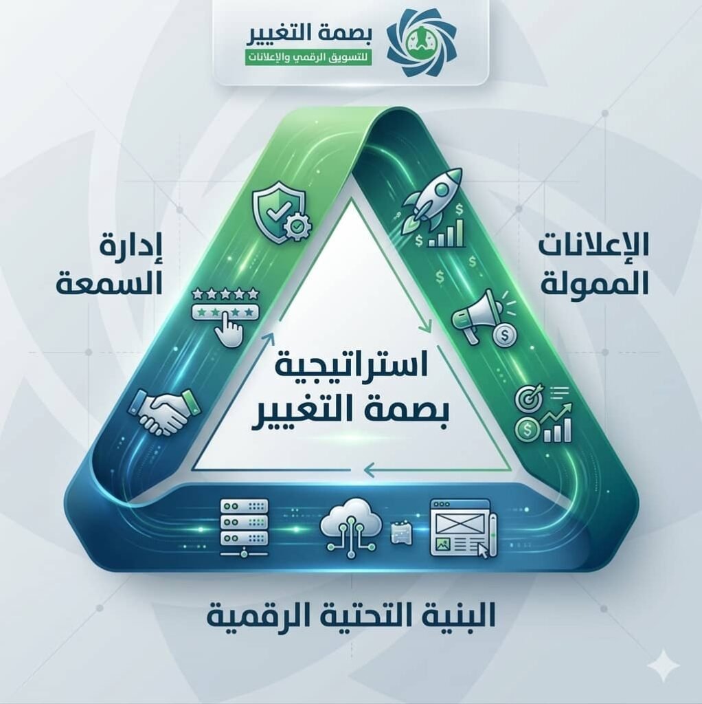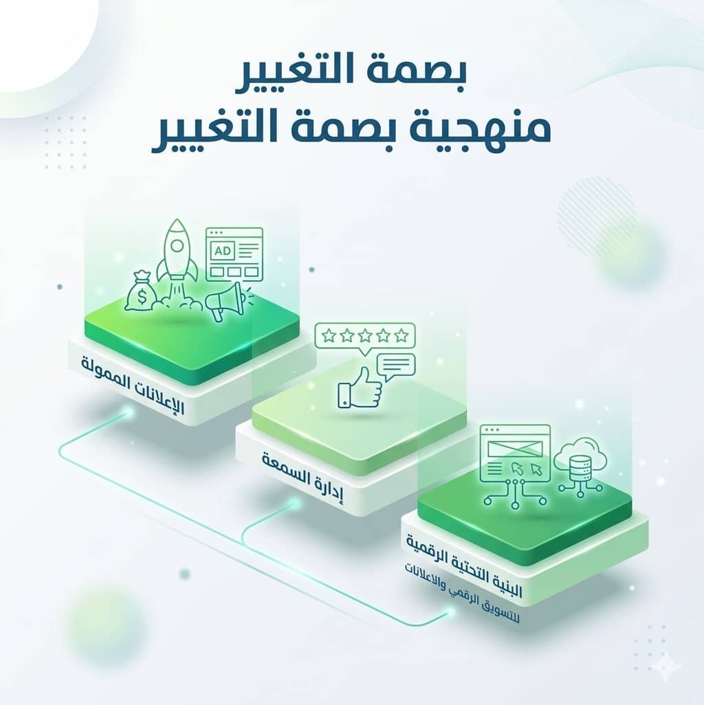منهجية بصمة التغيير هي خطة تسويقية متكاملة تعتمد على ثلاث ركائز أساسية: البنية التحتية الرقمية، إدارة السمعة، والإعلانات الممولة. تهدف إلى زيادة المبيعات وبناء ثقة العملاء وتحقيق نمو مستدام للشركات في السوق السعودي.